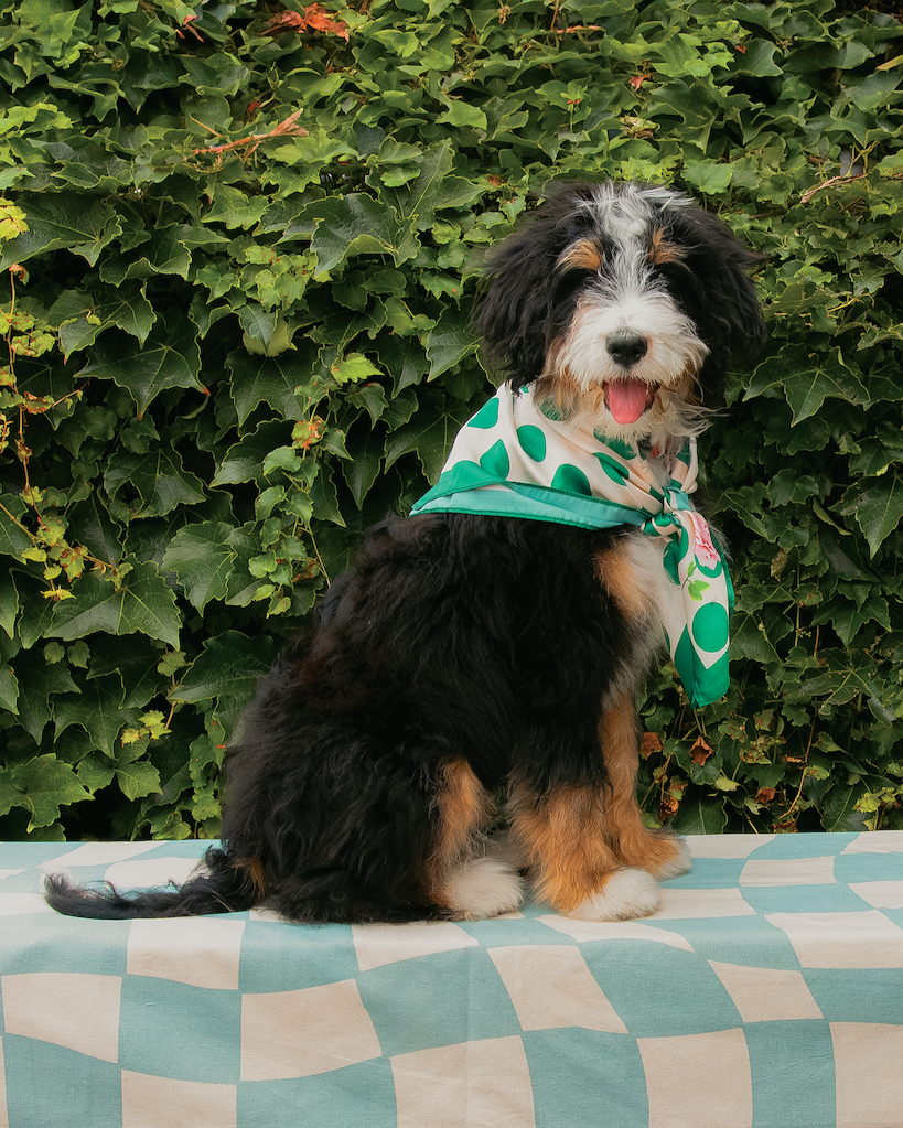 A Bernedoodle puppy who’s way of saying hello is a paw on your arm or a gentle lean on your leg. His favorite activities are sniffing the city flowers and snuggling into a bed of hasta. A pumpkin pupsicle is his treat of choice, paired with frapaw-ccino! He may be young, but he’ll still pick up the check.